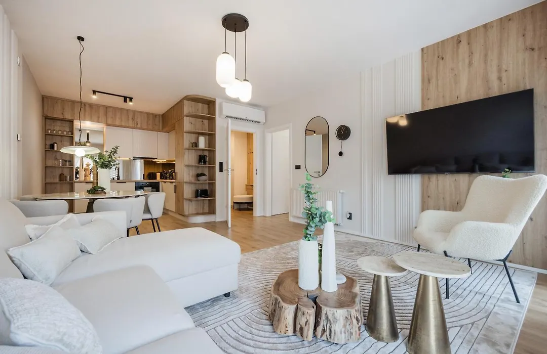 Az ingatlan magába foglal öltözőt, ülősarkot és nappalit mosógéppel és klímaberendezéssel a maximális kényelem érdekében. Az apartman vendégei élvezhetik a hajszárító és fürdőlepedők kényelmét a fürdőszobában. Emellett talál külön WC-t és mosógépet.